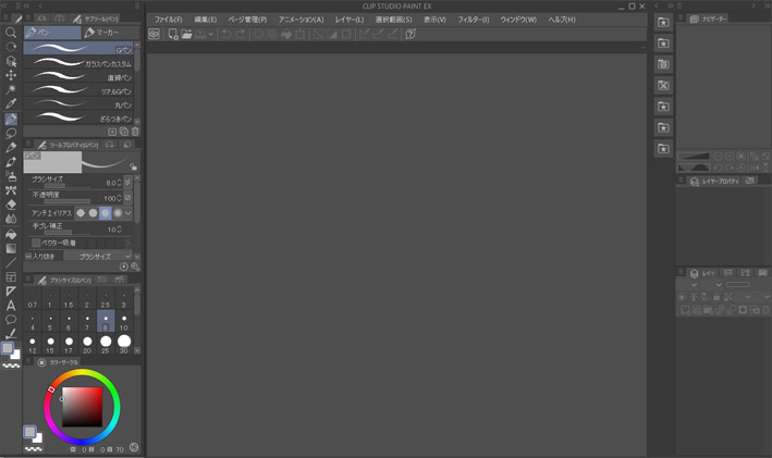 ペンツールを選択するとサブツールパレットに色んな種類のペンが表示されるので、色々試してみて一番好みのペンを選択してください。