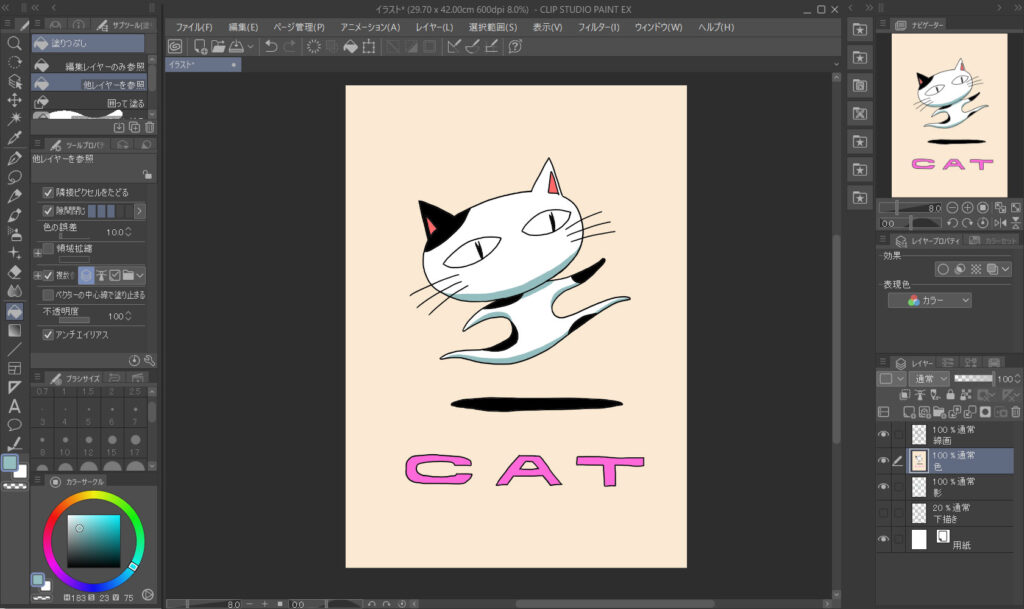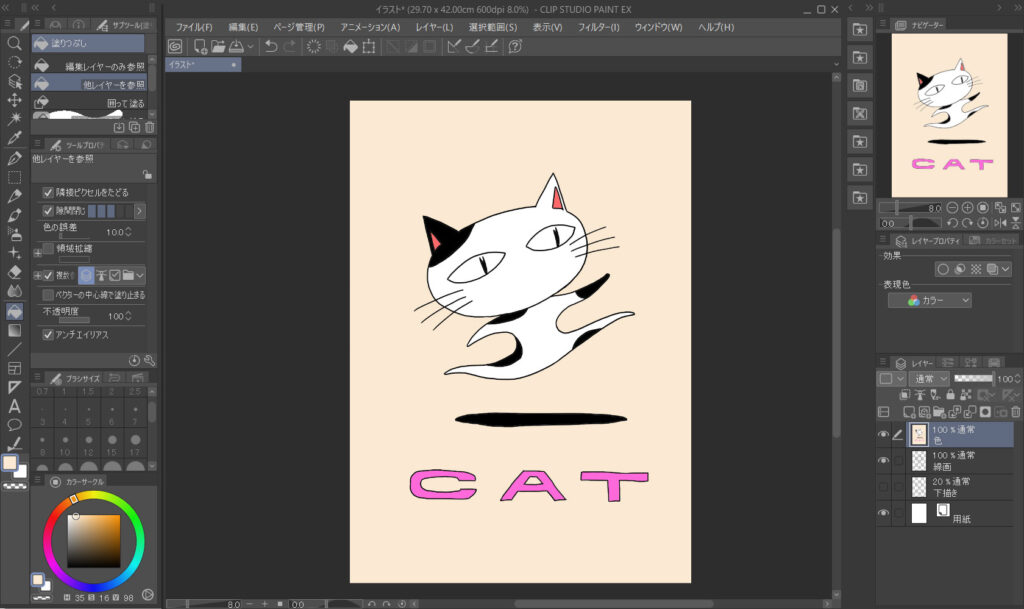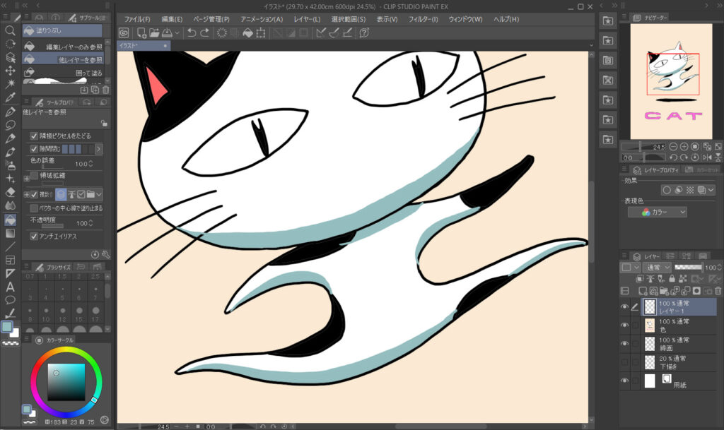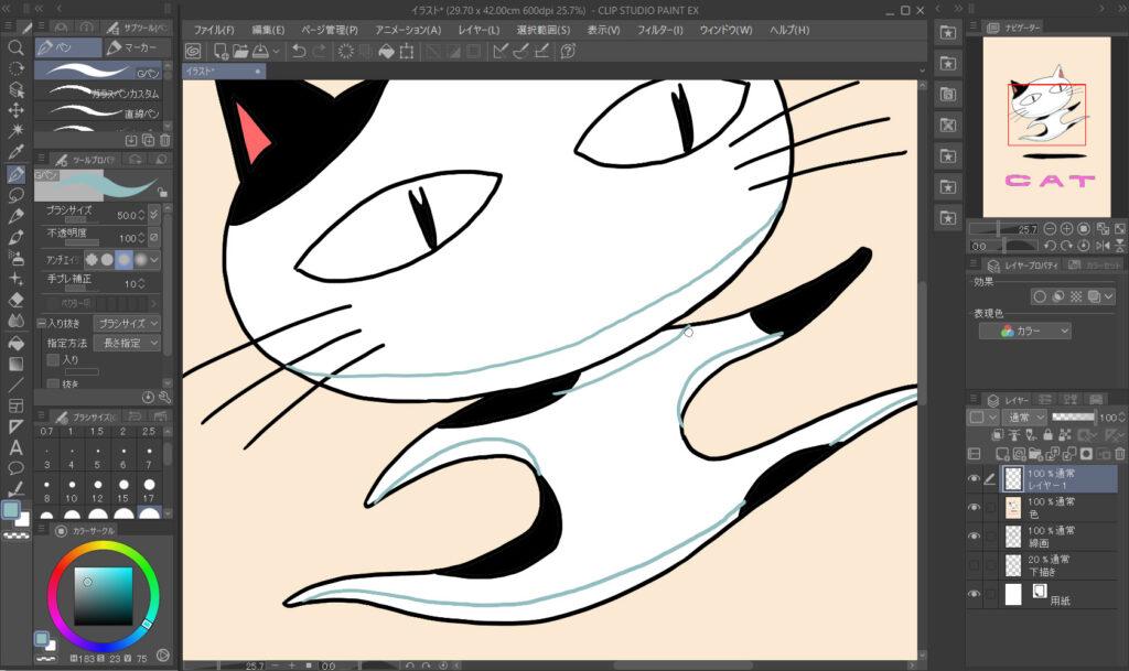線画も色塗りも全てラスターレイヤーだけで完結させることができるからです。