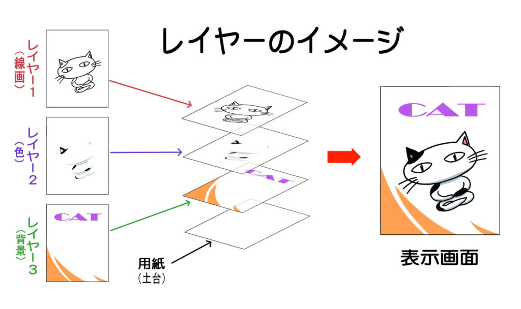 レイヤーというのは、透明な紙と思ってくれればOK。