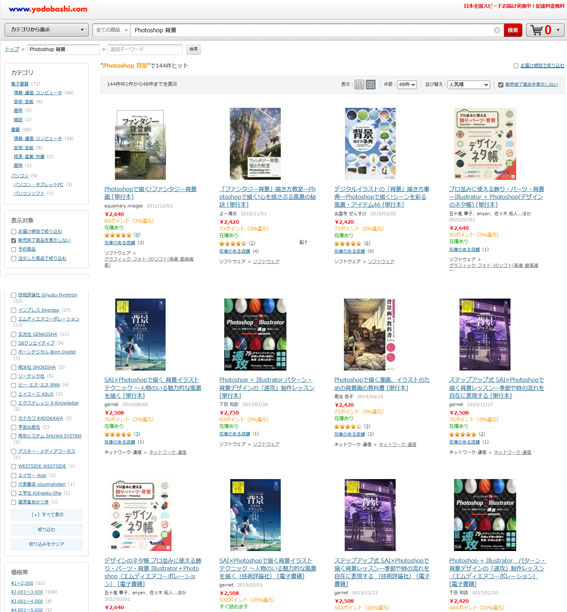 ヨドバシドットコムで「Photoshop 背景」で検索した結果。