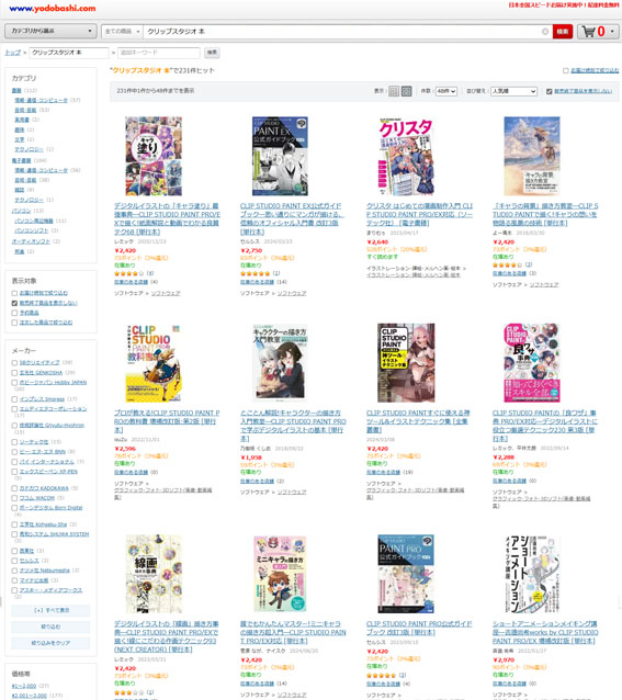ヨドバシドットコムで「クリップスタジオ 本」で検索した結果。